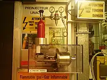 The 3.8-metre (12 ft) wide concrete-lined tunnel, constructed between 1983 and 1988, was formerly used to house the Large Electron–Positron Collider.[30] The tunnel crosses the border between Switzerland and France at four points, with most of it in France. Surface buildings hold ancillary equipment such as compressors, ventilation equipment, control electronics and refrigeration plants.