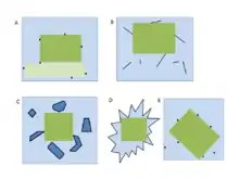 A maximal empty rectangle is a rectangle which is not contained in another empty rectangle. Each side of a maximal empty rectangle abuts an obstacle (otherwise the side may be shifted outwards, increasing the empty rectangle). An application of this kind is enumeration of "maximal white rectangles" in image segmentation R&D of image processing and pattern recognition.[6] In the contexts of many algorithms for largest empty rectangles, "maximal empty rectangles" are candidate solutions to be considered by the algorithm, since it is easily proven that, e.g., a maximum-area empty rectangle is a maximal empty rectangle.
