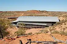 Dinosaur Stampede National Monument at Lark Quarry Conservation Park (also known just as Lark Quarry or Dinosaur Stampede) in Australia is considered to be the site of the world's only known record of a dinosaur stampede,[1] with fossilised footprints are interpreted as a predator stalking and causing a stampede of around 150 two-legged dinosaurs. This interpretation has been challenged in recent years, with evidence suggesting it may have been a natural river crossing.[2] The fossils date to either the Albian or Turonian periods between 104 to 92 million years ago, and are part of the Winton Formation sandstone. In 2015 Winton Shire Council invited the Australian Age of Dinosaurs Museum of Natural History to take over the operation of public guided tours at Dinosaur Stampede National Monument. This joint initiative, implemented in April 2016, provides visitors with a broader understanding of unique Australian dinosaurs and the world they inhabited. In 2018 Dinosaur Stampede National Monument received 14,180 visitors.