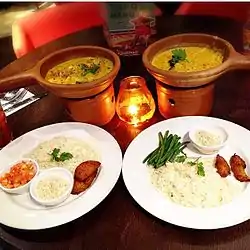 Las Iguanas menus include Latin American food such as nachos, burritos, xinxim, fajitas and tapas, along with steaks and burgers. They include vegetarian and vegan options such as veggie chilli, moqueca and empanadas, and gluten-free options. Las Iguanas is approved by the Vegetarian Society.[13][14]
