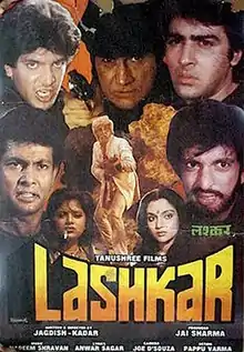 Lashkar (Army) is a 1989 Bollywood film directed by Jagdish Kadar, starring Dev Anand, Aditya Pancholi, Sonam, Hemant Birje, Madhavi, Sumeet Saigal, Jaaved Jaffrey, Kiran Kumar and Sadashiv Amrapurkar. The movie was a huge commission earner at the box office and is believed to be one of the last commercial successes of Dev Anand. This was the only film in the late 1980s that Dev Anand starred in that he did not produce or direct, but acted in the lead role and the film was a major box office success.[1]
