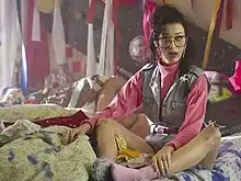 Before the video premiered, Perry created Facebook and Twitter profiles for a "brace-faced nerd-turned-hottie" thirteen-year-old she plays named Kathy Beth Terry.[34] Starting from June 8, a series of short video clips was uploaded on the Facebook profile, YouTube and Perry's official web version premiered later on the same day on Funny or Die. On July 11, after crossing the half-million "likes" mark, Perry released an interview in character as Terry on Digital Spy.[35] Perry, in character as Kathy Beth Terry made various references to Rebecca Black and other guests on the video on her Twitter and Facebook. She also gave interviews to the Digital Spy, Australian Cosmopolitan, and BOP Tiger Beat.[36][37]