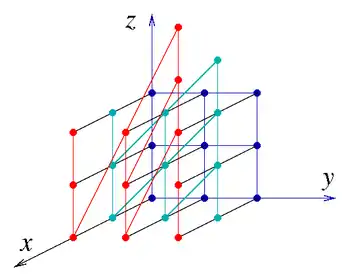 In Lie theory and related areas of mathematics, a lattice in a locally compact group is a discrete subgroup with the property that the quotient space has finite invariant measure. In the special case of subgroups of Rn, this amounts to the usual geometric notion of a lattice as a periodic subset of points, and both the algebraic structure of lattices and the geometry of the space of all lattices are relatively well understood.