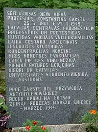 ![]() The epitaph of the chairman of the LCC Konstantīns Čakste in Krepa Kaszubska, Poland | |