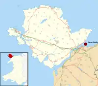 Lavan Sands (Welsh: Traeth Lafan) is an intertidal sandbank found in the Menai Strait between Bangor, Gwynedd and Llanfairfechan, Wales. Totally underwater at high tide, at extreme low tides it measures 5.5-mile (8.9 km) east-west and 3.25-mile (5.23 km) north-south. At the western end is found another sandbank Bangor Flats and just north is the sandbank Dutchman's Bank. At low tide the Lavan Sands make the narrowest part of the Menai Straits, at Beaumaris, a mere 237 m (778 ft). The area is designated as an SSSI[1] due in part to the large numbers of Eurasian oystercatchers that migrate there due to the freshwater streams that flow across it.[2]
