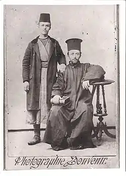 By the end of the Balkan Wars and the unification of part of Macedonia and Greece, the patriotic action of Lazaros does not stop. The following months he expands its business operations in Bilisht, in Vithkuq and Liqenas the district of Korçë. When, on February 17, 1914, he was proclaimed the autonomy of Northern Epirus,[48] his Epirotic origin called him back in the struggle. He left his family and his commercial stores and on 1 March 1914, was present at the formal proclamation of the autonomy of Northern Epirus in Gjirokastër, posing in photos with old comrades from the Macedonian Struggle and the Balkan Wars, the Prime Minister of the Provisional Government of Northern Epirus Georgios Zografos and the Bishops Dryinoupoleos Vasilios and Vella and Konitsis Spyridon.