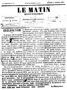 ![]() Le Matin first issue, 1 April 1907 | |