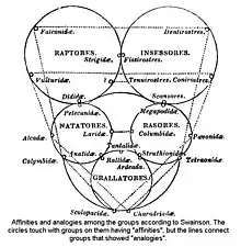 The entomologist William Sharp Macleay, in his 1821 book Horae Entomologicae which put forward the short-lived "Quinarian" system of classification into 5 groups, each of 5 subgroups, etc., asserted that in the Règne Animal "Cuvier was notoriously deficient in the power of legitimate and intuitive generalization in arranging the animal series".[1] The zoologist William John Swainson, also a Quinarian, added that "no person of such transcendent talents and ingenuity, ever made so little use of his observations towards a natural arrangement as M. Cuvier."[1]