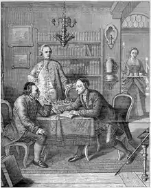 Kierkegaard's use of the term "leap" was in response to "Lessing's Ditch" which was discussed by Gotthold Ephraim Lessing (1729–1781) in his theological writings.[14] Kierkegaard was indebted to Lessing's writings in many ways. Lessing tried to battle rational Christianity directly and, when that failed, he battled it indirectly through, what Kierkegaard called, "imaginary constructions".[15] Both may be indebted to Jean-Jacques Rousseau.