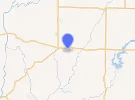 The Leatherwood Station Covered Bridge is a single span double Burr Arch Truss covered bridge structure that was built by Joseph A. Britton & Son in 1899. Originally it had sandstone abutments but when it was moved to Billie Creek Village they were replaced with concrete abutments with sandstone showing.[4][5]