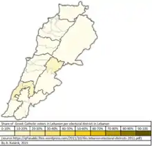 ![]() Distribution of Melkite Catholics in Lebanon | |
