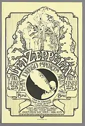 ![]() Poster for Led Zeppelin's concerts at San Diego, used to help promote its 1972 North American tour | |