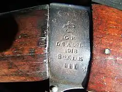 During the First World War, the SMLE Mk III was found to be too complicated to manufacture (an SMLE Mk III rifle cost the British government £3/15/– = £3.75), and demand outstripped supply; in late 1915 the Mk III* was introduced incorporating several changes, the most prominent of which were the deletion of the magazine cut-off mechanism, which when engaged permits the feeding and extraction of single cartridges only while keeping the cartridges in the magazine in reserve, and the long-range volley sights.[26][25][27] The windage adjustment of the rear sight was also dispensed with, and the cocking piece was changed from a round knob to a serrated slab.[28] Rifles with some or all of these features present are found, as the changes were implemented at different times in different factories and as stocks of parts were depleted.[29] The magazine cut-off was reinstated after the First World War ended, and not entirely dispensed with in manufacturing until 1933; some rifles with cut-offs remained into the 1960s.[28]