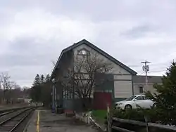 Lee station is a former railroad station in Lee, Massachusetts. It was built in 1893 to serve passenger traffic on the Housatonic Railroad, which operated the tracks that run through the town between Pittsfield to the north and Connecticut to the south.[2] It served as the town's main passenger station until passenger service was terminated in 1971 by the Penn Central Railroad, the NYNH&H's successor. In 1976 the building was converted to office use, and in 1981 it was rehabilitated and opened as a restaurant.[2] It also serves excursions of the Berkshire Scenic Railway Museum. It was added to the National Register of Historic Places in 2010 as Lee Station.