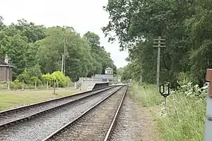 Leek Brook railway station was opened by the North Staffordshire Railway (NSR) in 1904.[1] It consisted of an island platform with two faces on the line from Stoke-on-Trent and Leek and a single platform on the down (i.e. Leek bound) direction of the Churnet Valley Line.[2]