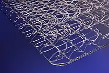 | At the time of their invention, bedsprings referred to cone-shaped wire coiled springs, attached to a wooden slat foundation, used to support then-popular mattresses. These mattresses were typically made of horse hair, corn husks, cotton, feathers, or another soft material. Early bedsprings functioned similarly to today's box springs in their support of a mattress. However, box springs are rather rigid in structure, while bedsprings provide a more flexible surface. |