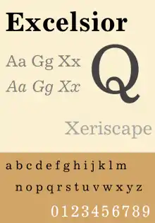- Linotype. "Excelsior". MyFonts. Retrieved 23 May 2015.