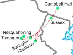 The Lehigh & New England Railroad (reporting mark LNE) was a Class I railroad located in Northeastern United States that acted as a bridge line. It was the second notable U.S. railroad to file for abandonment in its entirety,[1] the first being the New York, Ontario & Western Railway.[2]