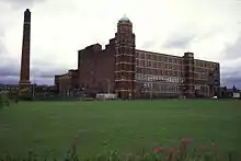 Other notable industry included the tractor factory of David Brown Limited, which was in Leigh following the acquisition in 1955 of Harrison, McGregor and Guest's Albion range of farm machinery products.[33] Rope-manufacture was another local industry: Mansley's Rope works on Twist Lane made rope by hand, using a rope walk. The factory burnt down in 1912.[34] Anchor Cables had a large works close to the Bridgewater Canal. The company was bought by Callender's Cables, in 1903, later to become British Insulated Callender's Cables (BICC), part of Balfour Beatty.[35] Another major 20th century employer was Sutcliffe Speakman, which made activated carbon and brick-making equipment.[36]