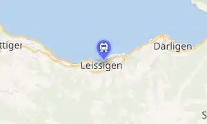 Leissigen railway station (German: Bahnhof Leissigen) is a closed railway station in the municipality of Leissigen, in the Swiss canton of Bern. It is an intermediate stop on the Lake Thun line.[1] Direct rail service ended with the 2020 timetable change and was replaced with regular bus service between Spiez and Interlaken.[4]