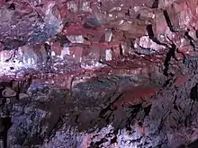 The southern Leitahraun produced a.o. multi colored lava tubes of which the best known are Búri and Raufarhólshellir, situated between the south coast of Reykjanes and the pass of Þrengslin on Hellisheiði.[9]