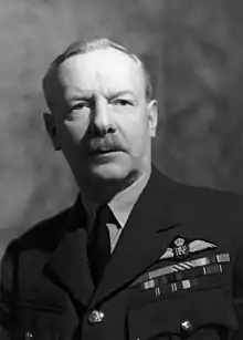Cheshire did what he could to convey to the men being trained how what was being taught at the OCU would translate to saving lives once they began flying in earnest. In April he was awarded a bar to his DSO.[37] And yet the time was a personal crisis for Cheshire. He longed to get back to operational flying but could not, as he could not ask Air Vice-Marshal Carr to reverse his promotion to Group Captain, and with such a rank no flying position was available.[38] A possible 'out' arose when the AOC of the PFF, Don Bennett, arrived at his airfield to tour his station. Cheshire approached Bennett and asked permission to transfer to the Pathfinder Force. Bennett was not receptive. He replied that at present no jobs were available. Regardless, he was not sure if Cheshire would be suitable and a trial would be necessary.[11][39] Cheshire was not pleased, and said so. It is not known why Bennett did not want Cheshire in the Pathfinder Force. It was not the first time Bennett had passed on Cheshire. Bennett's primary recruiting officer, Hamish Mahaddie, found it a mystery. Mahaddie said "Chesh was the only person I selected for training with the Pathfinder Force that Bennett vetoed. I was never able to establish why."[40] In the end Cheshire viewed the refusal as a blessing in disguise. "He did me a good turn, because I got something better."[11]