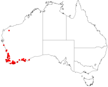 The rhizomatous sedge typically grows to a height of 0.5 metres (1.6 ft) and to about 0.3 m (1.0 ft) wide. In Western Australia it is found along the coast on steep slopes as two separate populations in the Peel and Great Southern regions where it grows in sandy-clay-loam soils over or around granite.[1]