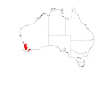 It is found in the IBRA regions of the Avon Wheatbelt, the Geraldton Sandplains, the Jarrah Forest, the Mallee biogeographic region, and the Swan Coastal Plain.[1]
