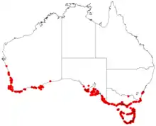 L. gladiatum in coastal regions around Australia in the States of New South Wales, Victoria, Tasmania, South Australia and Western Australia. In Southwest Australia it can be found as far north as Cervantes and as far east as Cape Arid National Park.[5]