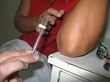 The Bacillus Calmette–Guérin (BCG) vaccine offers a variable amount of protection against leprosy in addition to its closely related target of tuberculosis.[76] It appears to be 26% to 41% effective (based on controlled trials) and about 60% effective based on observational studies with two doses possibly working better than one.[77][78] The WHO concluded in 2018 that the BCG vaccine at birth reduces leprosy risk and is recommended in countries with high incidence of TB and people who have leprosy.[79] People living in the same home as a person with leprosy are suggested to take a BCG booster which may improve their immunity by 56%.[80][81] Development of a more effective vaccine is ongoing.[15][82][83][84]