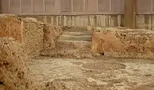 Lerna has one of the largest prehistoric tumuli of Greece, accumulated during a long Neolithic occupation; then its crest was levelled and extended — as at Early Helladic Eutresis and Orchomenus[7]— in a new settlement: this stratum, called Lerna III in the site's stratigraphy, corresponds with Early Helladic II at other sites. Lerna III lacks signs of continuity with the previous occupation; it is the site of a two-storey palace or administrative center[8] that is referred to as House of the Tiles, for the terracotta tiles that sheathed its roof (an early example of tile roofing). This strongly fortified[9] power center dates to the Early Bronze Age culture called Early Helladic, ca 2500 - 2200 BCE. Though five stages of occupation at Lerna have been identified, the site of "House of the Tiles", after it had been destroyed by fire,[10] was not rebuilt upon, whether through respect[11] or fear, until, at the end of the Middle Helladic period, shaft graves were cut into the tumulus of the House of Tiles, indicating that the significance of that monument had been forgotten. Lerna was used as a cemetery during the Mycenaean age, but was abandoned about 1250 BCE.
