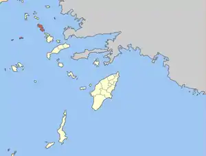 Leros (Greek: Λέρος) is a Greek island and municipality in the Dodecanese in the southern Aegean Sea. It lies 317 kilometres (197 miles) (171 nautical miles) from Athens's port of Piraeus, from which it can be reached by an 9-hour ferry ride or by a 45-minute flight from Athens, and about 20 miles to Turkey. Leros is part of the Kalymnos regional unit. The island has been also called in Italian: Lero.