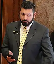 He was selected to serve as the assistant minority leader on November 10, 2016.[20] Senator Lucía Guzmán resigned as Minority Leader, stating that she could not work with the Republican leadership in the state senate on sexual harassment issues, and Garcia was selected to replace her, with Senator Rhonda Fields being the only vote against him, while Guzmán was selected to replace him as assistant minority leader.[21] He was selected to serve as president of the state senate on November 8, 2018, becoming the first Hispanic person to hold the position, and reelected to the position in 2020.[22][23][24]