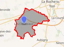 Les Clouzeaux (French pronunciation: [le kluzo]) is a former commune of the Vendée department in the Pays de la Loire region in western France. On 1 January 2016, it was merged into the new commune of Aubigny-Les Clouzeaux.[2] Its male inhabitants are called Cluzéliens, and Cluzéliennes for the female ones.
