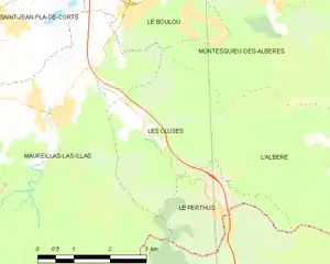 Les Cluses is located in the canton of Vallespir-Albères and in the arrondissement of Céret.