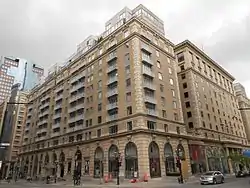 The hotel opened on December 20, 1922, managed by the United Hotels Company.[2] It was sold by its owners, Cardy Hotels, to Sheraton Hotels in 1950, along with the company's other Canadian properties in Quebec and Ontario.[3] The hotel was renamed the Sheraton-Mt. Royal Hotel in 1951.[4] The hotel left Sheraton on March 31, 1982, when the nearby Le Centre Sheraton Hotel opened to replace it. The Mt. Royal Hotel closed on November 17, 1984.[5]