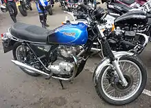 Instead, under a renewable five year licence starting from 28 November 1983[3] granted by the successful bidder, John Bloor, the new owner of Triumph, Harris manufactured 750 cc Bonnevilles (and some of the 750 cc single-carburettor TR7V Tiger models [4] also used by the Royal Signals Motorcycle Display Team) until 1988.