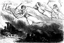 The thirty-fourth poem of Les Orientales is "Mazeppa". This poem, written in May 1828,[1] deals with the legendary story of Ivan Mazeppa who was punished because he was caught in a love affair with a Polish nobleman's wife. The poem is organized in two parts: the first one is about Mazeppa's physical travel across the plains of Russia, strapped naked on the horse's back, until its death. The second part is about his spiritual travel to get back to life, and has been described as a kind of allegory of the creative process: "He races, he flies, he falls. He rises again, king".[2] The poem cites Lord Byron (author of the narrative poem Mazeppa and is dedicated to Louis Boulanger, who painted Byron's version. All the works ultimately derive from the cultural legacy of Mazeppa.