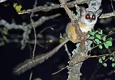 Lesser bushbabies, or lesser galagos, are strepsirrhine primates of the genus Galago. They are classified, along with the bushbabies (genus Euoticus) and the rest of the galagos (genus Otolemur), in the family Galagidae.[1] They are probably the most numerous primate in Africa, and can be found in every large forest on the continent, inhabiting forested areas, savannas, riverine bush and open woodlands.[2][3]