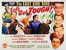 Let's Get Tough! is a 1942 film and the ninth film in the East Side Kids series, starring Leo Gorcey (as Muggs), Huntz Hall (as Glimpy), Bobby Jordan (as Danny), and Robert Armstrong (as "Pops" the Cop). Released in early 1942, it was directed by Wallace Fox, and features the gang caught up in World War II and fighting the Black Dragon Society, an enemy sabotage ring.
