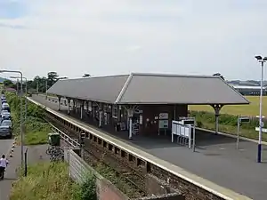 On 30 June 1913, the station buildings at Leuchars Junction burnt to the ground. This was widely believed to be arson by suffragettes.[5] The current buildings are those of the 1913 rebuilding. After the closure of the Tayport line in 1967 and the St Andrews branch on 6 January 1969 the station ceased to be a junction and the two bays were filled in. The station was subsequently renamed "Leuchars (for St Andrews)".
