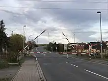 As of 2016, the Thai rail network has 2,624 level crossings nationwide. Many have no crossing barriers, making them frequent sites of accidents.[44] Some level crossings are manually operated, wherein the barriers are lowered using a manual switch when trains approach. There were/are still "roller-gates" in use, but these are increasingly being replaced by heavy barriers. Sometimes they are still available as a reserve. Previously there were also a system where a cable came down the road, with red and white signs on it.