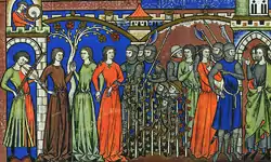 The episode of the Levite's concubine, also known as the Benjamite War,[1] is a biblical narrative in Judges 19–21 (chapters 19, 20 and 21 of the Book of Judges). It concerns a Levite from Ephraim and his concubine, who travel through the Benjamite city of Gibeah and are assailed by a mob, who wish to gang-rape the Levite. He turns his concubine over to the crowd, and they rape her until she collapses. The Levite dismembers her and presents the remains to the other tribes of Israel. Outraged by the incident, the tribes swear that none shall give his daughter to the Benjamites (or Benjaminites) for marriage, and launch a war which nearly wipes out the clan, leaving only 600 surviving men. However, the punitive expedition is overcome by remorse, fearing that it will cause the extinction of an entire tribe. They circumvent the oath by pillaging and massacring the city of Jabesh-Gilead, none of whose residents partook in the war or in the vow, and capturing its 400 maidens for the Benjaminites. The 200 men still lacking women are subtly allowed to abduct the maidens dancing at Shiloh.