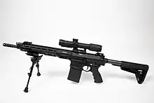 In 2009, Lewis Machine & Tool Co was contracted to supply the British Ministry of Defence (MOD) with 440 LM308MWS 7.62×51mm rifles[9] under the official service designation as the L129A1.[10] As of December 2014, over 3,000 units have been supplied to UK forces.[11]