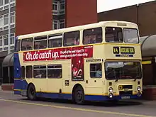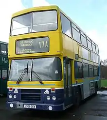 Dublin Bus purchased a total of 175 Alexander-bodied Leyland Olympians from 1990 until the end of Leyland production in 1993, these being the first double-deckers to be built at Alexander's Belfast plant since 1975.[16] The Leyland Olympians were initially classed as the 'RH' type in the fleet, but this was soon changed to 'RA' classification.[17][18]
