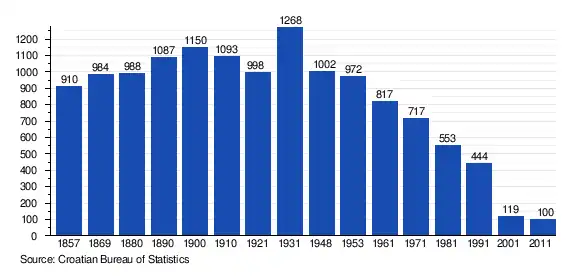 The 1991 census[2] recorded that 98.42% of the village population were ethnic Serbs (437/444), 0.23% were ethic Croats (1/444) and 1.35% were of other ethnic origin (6/444).