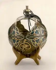 According to the Book of Mormon and other Latter Day Saint movement sources, the Liahona (/ˌliːəˈhoʊnə/)[1] is a brass ball that operated as a type of compass with two spindles. One of the spindles was said to point the direction Lehi and his party should travel after their escape from Jerusalem, but it only worked when they were faithful. The Book of Mormon states that the Liahona also contained periodic written instructions from God. According to some sources, the Liahona was among the Book of Mormon artifacts Joseph Smith said were found with the golden plates.[2][3]