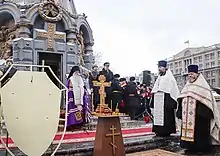 The Liberation Day, officially known as the Day of Liberation of Bulgaria from the Ottoman Dominion (Bulgarian: Ден на Освобождението на България от османско иго, romanized: Den na Osvobozhdenieto na Bǎlgarya ot osmansko igo) in Bulgaria is celebrated on 3 March. It commemorates the Liberation of Bulgaria during the events of the Russo-Turkish War (1877–1878) that led to the re-establishment of a Bulgarian statehood. The Treaty of San Stefano signed on 3 March 1878 envisaged the Ottoman Empire to accept the refoundation of the Bulgarian state that was conquered in 14th century during the Bulgarian–Ottoman wars.[1] It was celebrated for the first time on 19 February 1880 as the Day of Emperor Alexander II's Ascension and the Conclusion of the San Stefano Peace Treaty.[2] It was officially designated as Liberation Day on its 10th anniversary in 1888 by the Principality of Bulgaria.[3] It was only in 1978 when it started to be celebrated on a national scale. It became an official holiday by decree 236 of the Chairman of the State Council on 27 February 1990, coming into effect on 5 March.[4]
