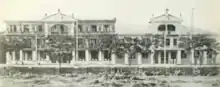 Upon receipt of her diploma, Avelino, with the support of her father and step-mother, opened a free school in Pandacan. She modeled it on Lopez's school and trained students for the teaching examination.[15] As the school grew rapidly,[16] to further her own education, Avelino studied dressmaking and embroidery at the Concordia College and then took a course offered by the sisters of the Assumption Convent, which allowed her to earn a certificate to teach high school[17] in 1893.[18] During her courses, Avelino met Carmen de Luna, who would become her collaborator and companion for the rest of her life.[19] Activities at Avelino's school initially continued at the onset of the Philippine Revolution in 1896,[20] but when the United States forces arrived in Pandacan, she suspended her courses.[21] On the advice of her father, she fled to Manila days before her hometown was reduced to ashes by the invading soldiers.[22] By the time her family, which included three step-siblings, was able to join her, they had lost their home, as well as their business in the conflict.[23] Assisted by brothers Vicente and Lucas Gonzalez, Avelino was loaned a property in Santa Cruz in which to reopen her school.[24] As the school grew, it moved from Fernandez Street to San Sebastian, now R. Hidalgo Street. She was soon joined by her cousin Margarita "Garit" Oliva and Carmen de Luna.[25]
