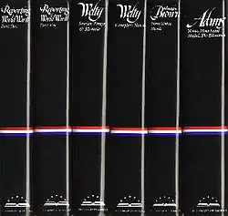 The LOA has been satirized as "confer[ing] value on writers by encasing their work in handsome black-jacketed covers with a stripe of red, white, and blue on the spine."[8] The series even prompted a mocking poem that began:
